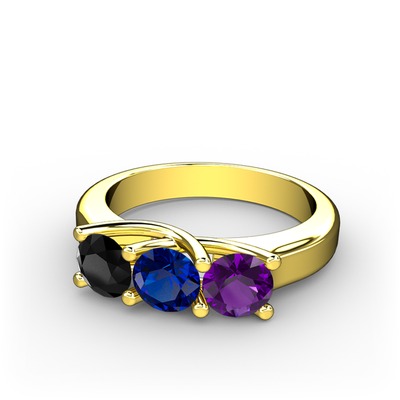 Siyah zirkon, lab safir ve ametist 925 ayar altın kaplama gümüş yüzük
