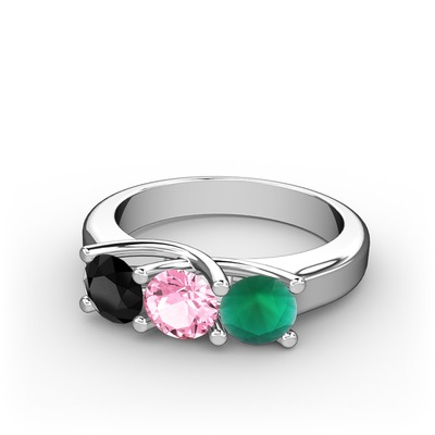Siyah zirkon, pembe kuvars ve kök zümrüt 8 ayar beyaz altın yüzük