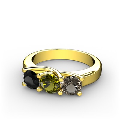 Siyah zirkon, peridot ve dumanlı kuvars 18 ayar altın yüzük