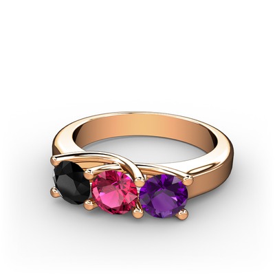 Siyah zirkon, rodolit garnet ve ametist 18 ayar rose altın yüzük