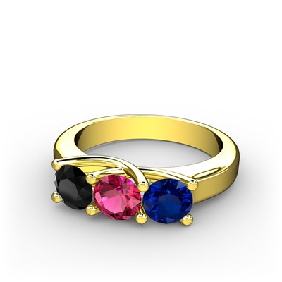 Siyah zirkon, rodolit garnet ve lab safir 18 ayar altın yüzük