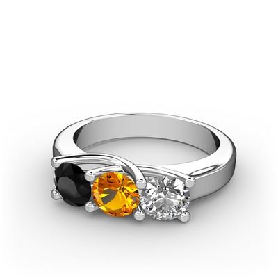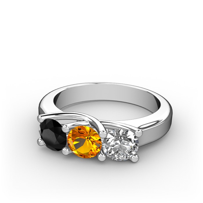 Siyah zirkon, sitrin ve beyaz zirkon 925 ayar gümüş yüzük