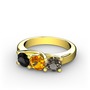 Siyah zirkon, sitrin ve dumanlı kuvars 925 ayar altın kaplama gümüş yüzük