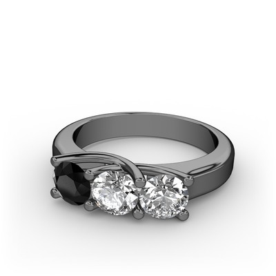Siyah zirkon, swarovski ve beyaz zirkon 925 ayar siyah rodyum kaplama gümüş yüzük