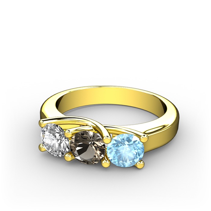 Swarovski, dumanlı kuvars ve akuamarin 925 ayar altın kaplama gümüş yüzük