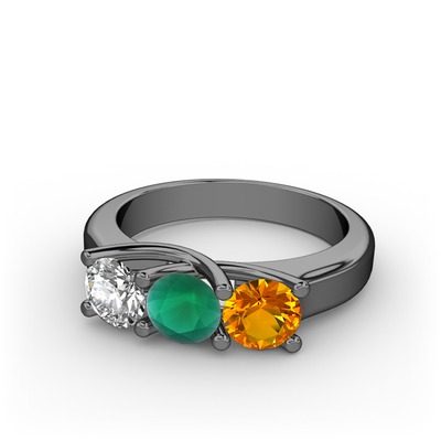 Swarovski, kök zümrüt ve sitrin 925 ayar siyah rodyum kaplama gümüş yüzük