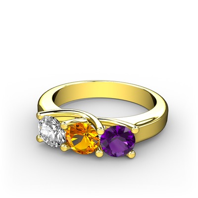Swarovski, sitrin ve ametist 18 ayar altın yüzük