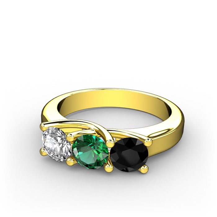 Swarovski, yeşil kuvars ve siyah zirkon 8 ayar altın yüzük