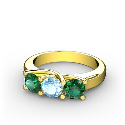 Yeşil kuvars ve akuamarin 925 ayar altın kaplama gümüş yüzük