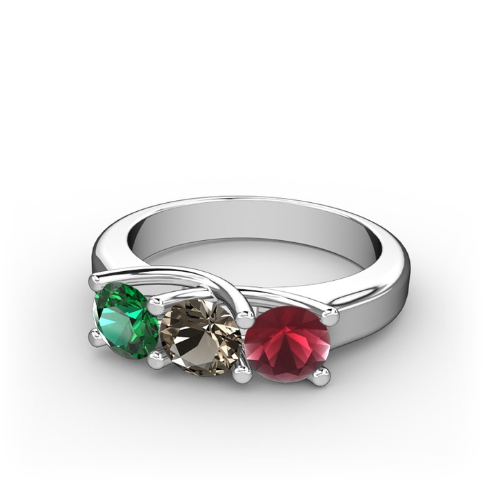Yeşil kuvars, dumanlı kuvars ve kök yakut 925 ayar gümüş yüzük