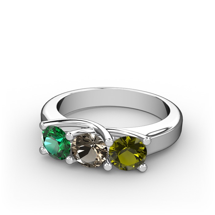 Yeşil kuvars, dumanlı kuvars ve peridot 18 ayar beyaz altın yüzük
