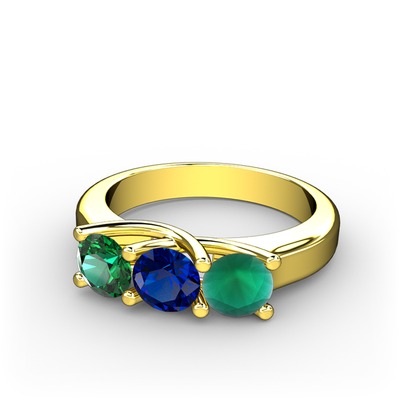 Yeşil kuvars, lab safir ve kök zümrüt 8 ayar altın yüzük