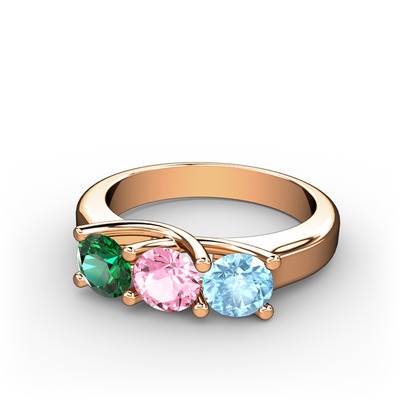Yeşil kuvars, pembe kuvars ve akuamarin 14 ayar rose altın yüzük