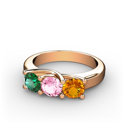 Yeşil kuvars, pembe kuvars ve sitrin 8 ayar rose altın yüzük