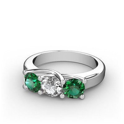 Yeşil kuvars ve pırlanta 14 ayar beyaz altın yüzük (0.5 karat)