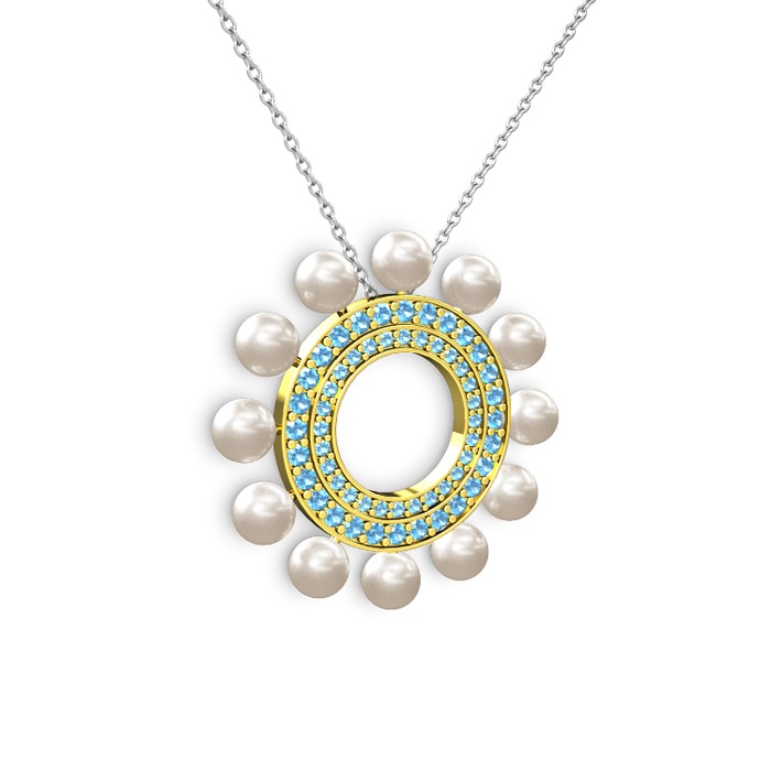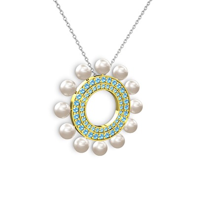 Inci ve akuamarin 8 ayar altın kolye (40 cm beyaz altın rolo zincir)