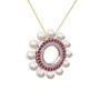 Inci, akuamarin ve ametist 8 ayar rose altın kolye (40 cm gümüş rolo zincir)