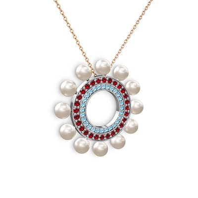 Inci, akuamarin ve garnet 925 ayar gümüş kolye (40 cm rose altın rolo zincir)