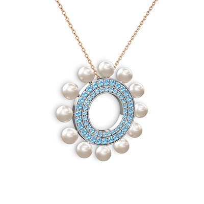 Inci ve akuamarin 925 ayar gümüş kolye (40 cm rose altın rolo zincir)