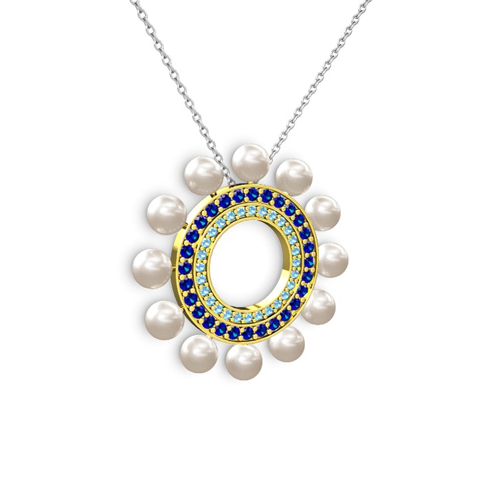 Inci, akuamarin ve lab safir 925 ayar altın kaplama gümüş kolye (40 cm beyaz altın rolo zincir)
