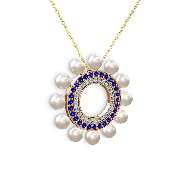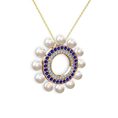 Inci, akuamarin ve lab safir 925 ayar rose altın kaplama gümüş kolye (40 cm altın rolo zincir)