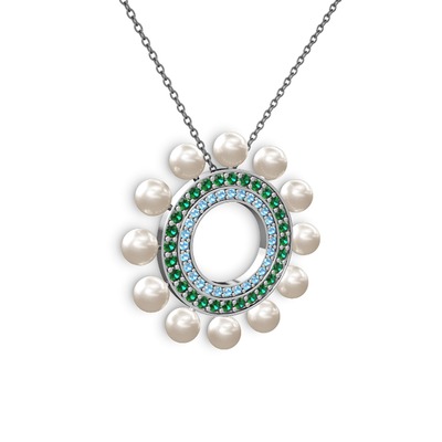 Inci, akuamarin ve yeşil kuvars 8 ayar beyaz altın kolye (40 cm gümüş rolo zincir)