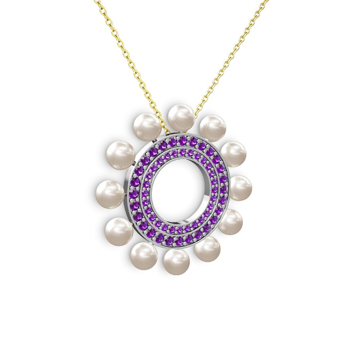 Inci ve ametist 8 ayar beyaz altın kolye (40 cm altın rolo zincir)