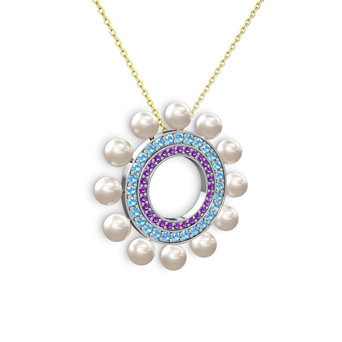 Inci, ametist ve akuamarin 925 ayar gümüş kolye (40 cm altın rolo zincir)