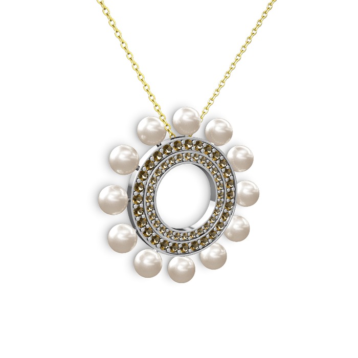 Inci ve dumanlı kuvars 14 ayar beyaz altın kolye (40 cm altın rolo zincir)