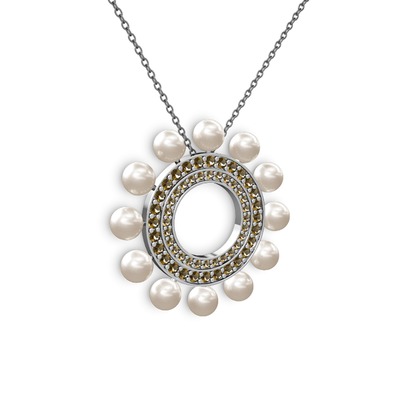 Inci ve dumanlı kuvars 8 ayar beyaz altın kolye (40 cm gümüş rolo zincir)