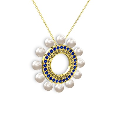 Inci, dumanlı kuvars ve lab safir 18 ayar altın kolye (40 cm altın rolo zincir)