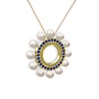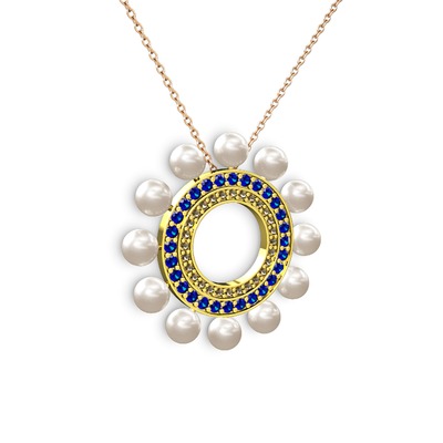 Inci, dumanlı kuvars ve lab safir 18 ayar altın kolye (40 cm rose altın rolo zincir)