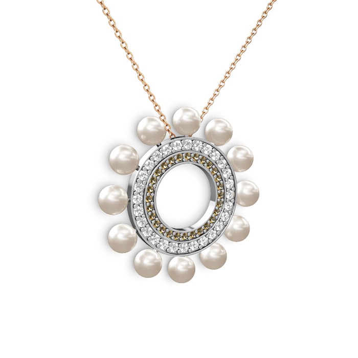 Inci, dumanlı kuvars ve pırlanta 8 ayar beyaz altın kolye (0.2464 karat, 40 cm rose altın rolo zincir)