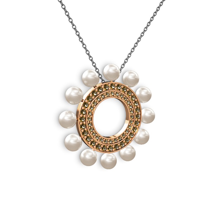 Inci ve dumanlı kuvars 925 ayar rose altın kaplama gümüş kolye (40 cm gümüş rolo zincir)