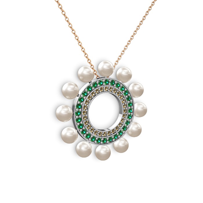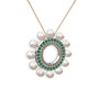 Inci, dumanlı kuvars ve yeşil kuvars 18 ayar beyaz altın kolye (40 cm rose altın rolo zincir)