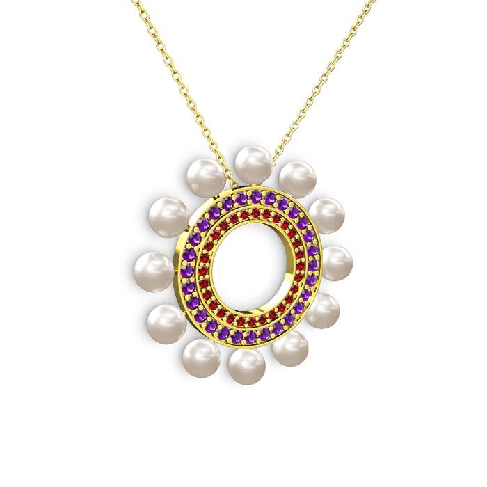 Inci, garnet ve ametist 14 ayar altın kolye (40 cm altın rolo zincir)
