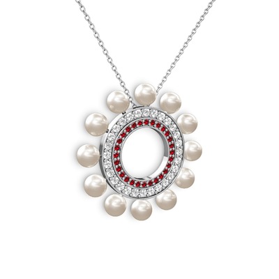 Inci, garnet ve pırlanta 8 ayar beyaz altın kolye (0.2464 karat, 40 cm beyaz altın rolo zincir)