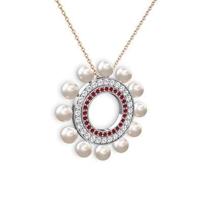 Inci, garnet ve pırlanta 8 ayar beyaz altın kolye (0.2464 karat, 40 cm rose altın rolo zincir)