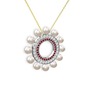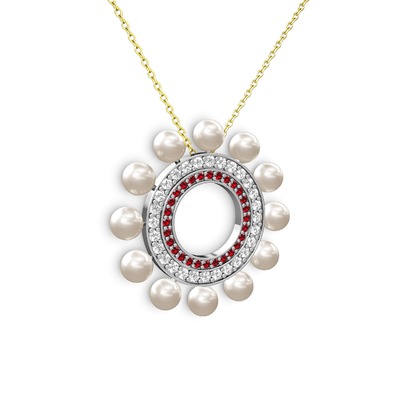 Inci, garnet ve pırlanta 925 ayar gümüş kolye (0.2464 karat, 40 cm altın rolo zincir)