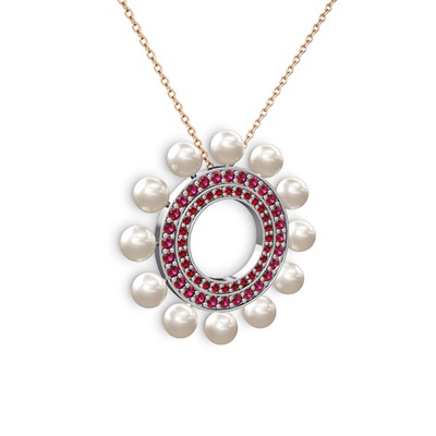 Inci, garnet ve rodolit garnet 14 ayar beyaz altın kolye (40 cm rose altın rolo zincir)