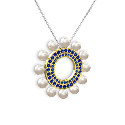 Inci ve lab safir 14 ayar altın kolye (40 cm beyaz altın rolo zincir)