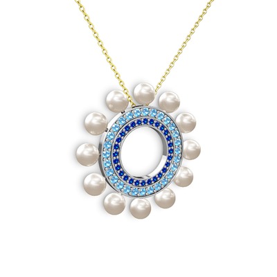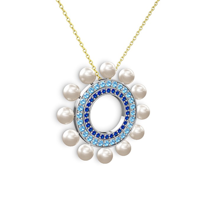 Inci, lab safir ve akuamarin 8 ayar beyaz altın kolye (40 cm altın rolo zincir)