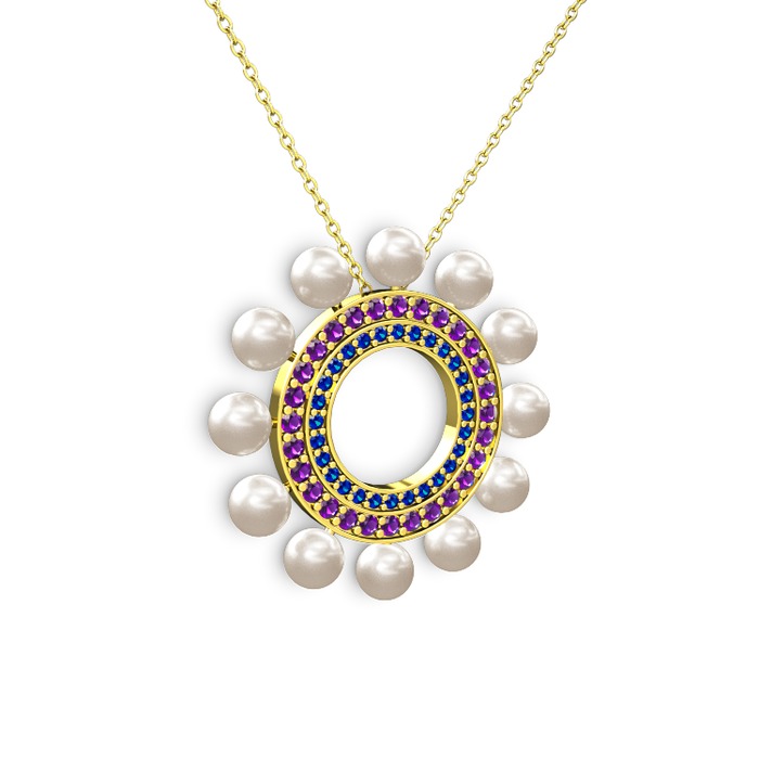 Inci, lab safir ve ametist 8 ayar altın kolye (40 cm altın rolo zincir)