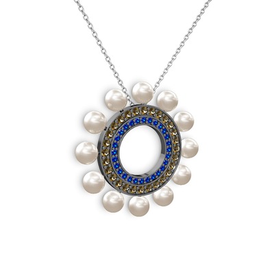 Inci, lab safir ve dumanlı kuvars 925 ayar siyah rodyum kaplama gümüş kolye (40 cm beyaz altın rolo zincir)