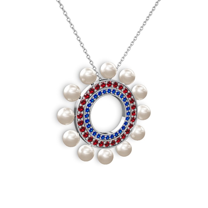 Inci, lab safir ve garnet 14 ayar beyaz altın kolye (40 cm beyaz altın rolo zincir)