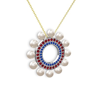 Inci, lab safir ve garnet 14 ayar beyaz altın kolye (40 cm gümüş rolo zincir)