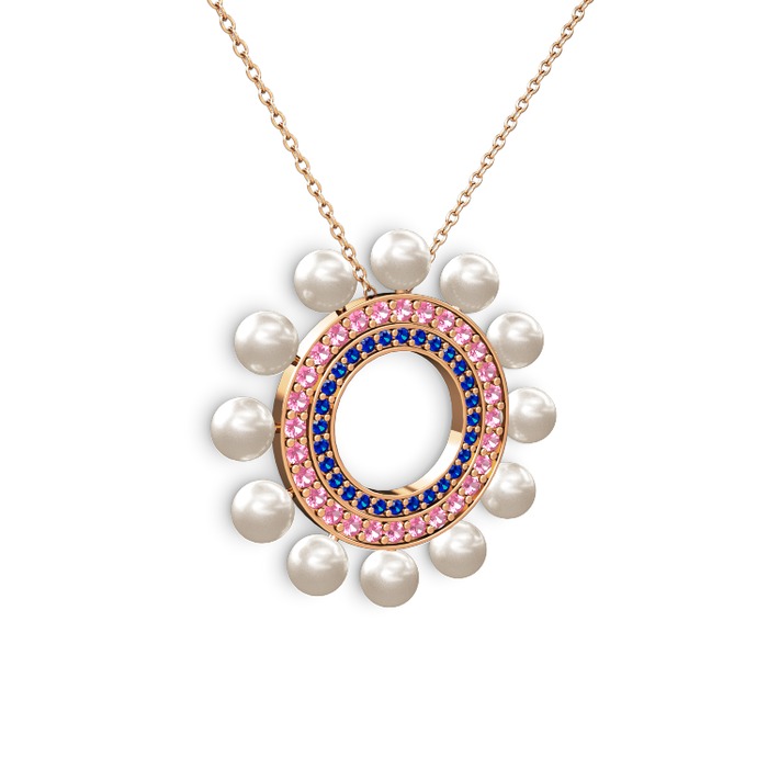 Inci, lab safir ve pembe kuvars 8 ayar rose altın kolye (40 cm rose altın rolo zincir)