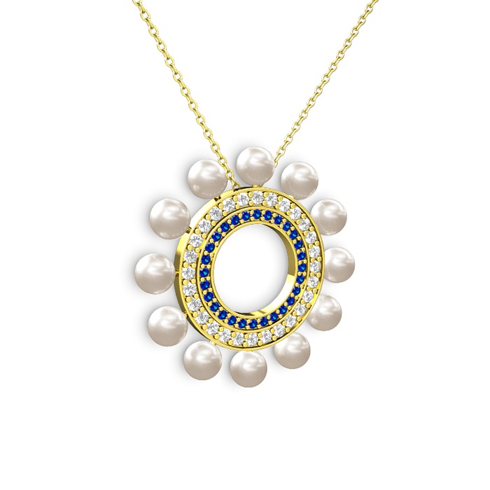 Inci, lab safir ve pırlanta 8 ayar altın kolye (0.2464 karat, 40 cm gümüş rolo zincir)