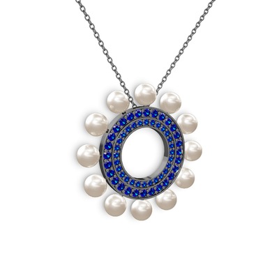 Inci ve lab safir 925 ayar siyah rodyum kaplama gümüş kolye (40 cm gümüş rolo zincir)