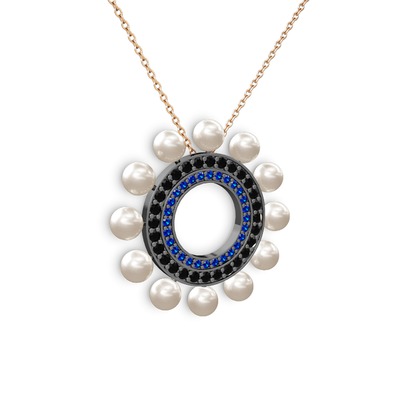 Inci, lab safir ve siyah zirkon 925 ayar siyah rodyum kaplama gümüş kolye (40 cm rose altın rolo zincir)